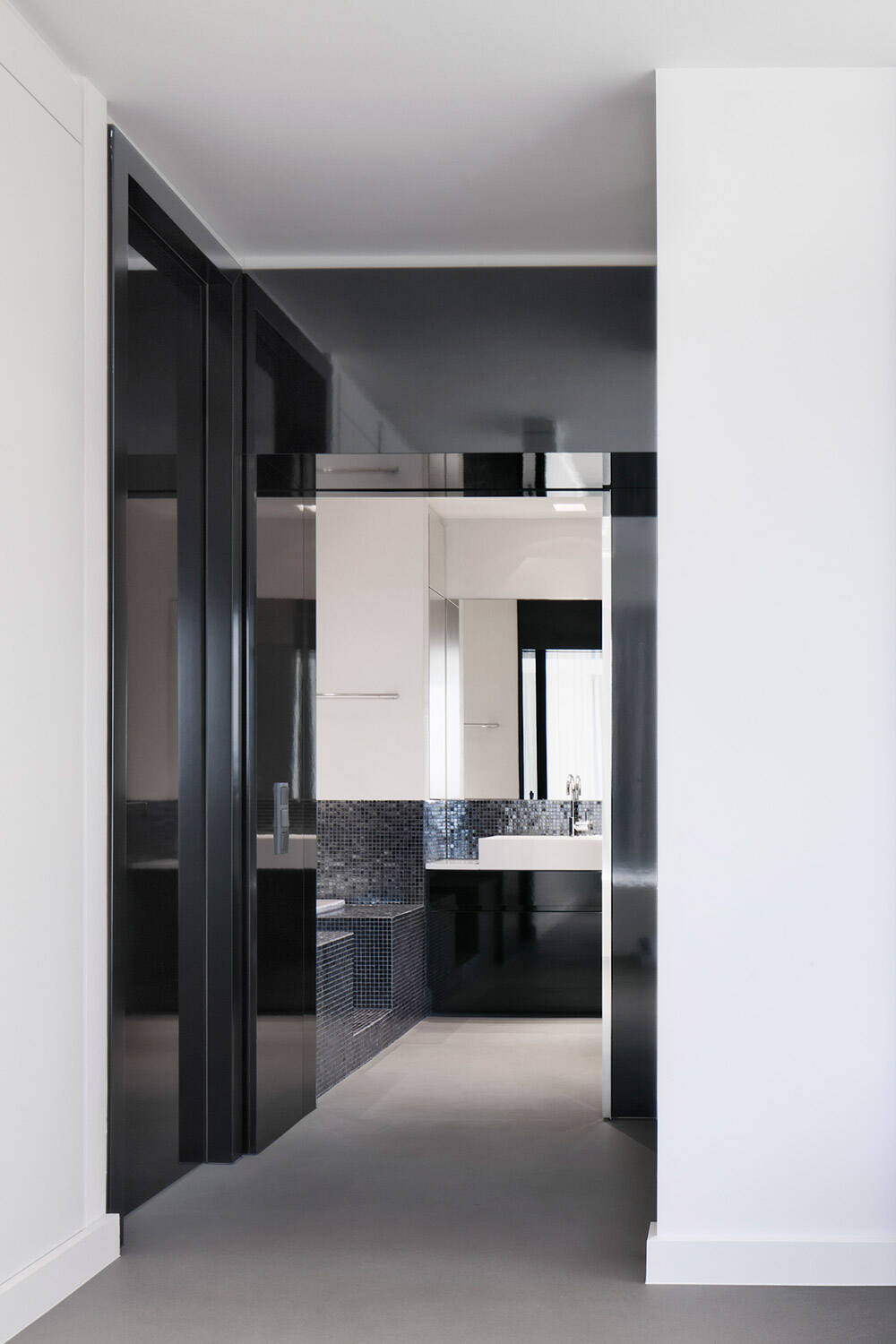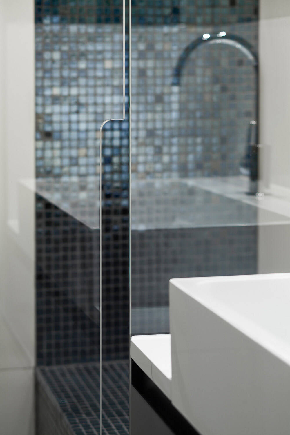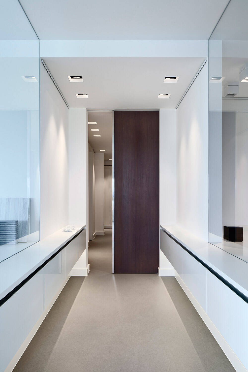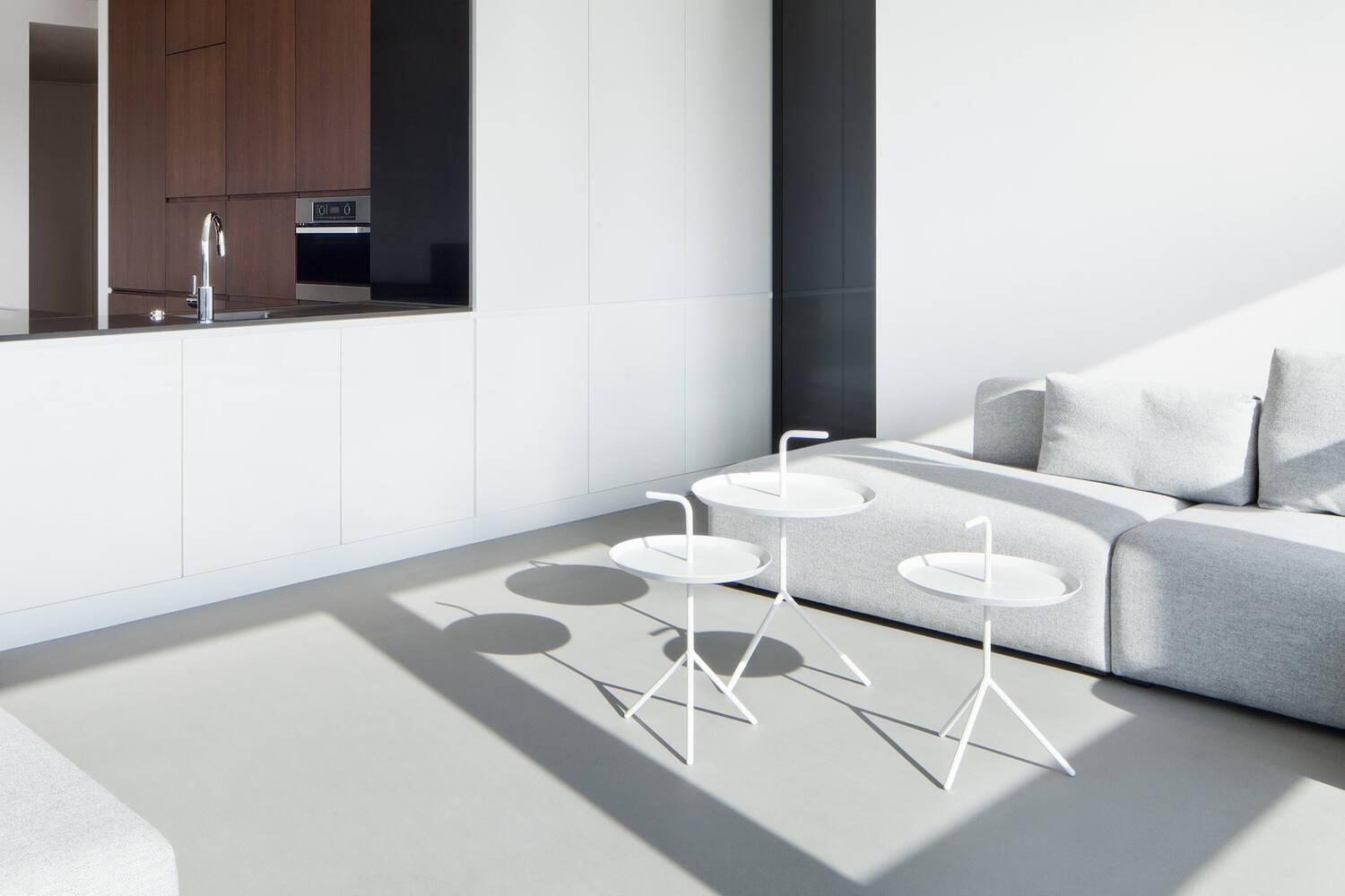 Die ursprünglichen Raumgrenzen werden gelöst und schaffen so eine neue Struktur, die sich intuitiv zeigt und leitet. Die offene Küchensituation wird zum Herzstück des Wohnens. Dort herum gruppieren sich die übrigen Raumformationen. Immer erscheinen die Räume in einem begreiflichen Miteinander, einem geordneten, einheitlichen Ganzen. Blickbeziehungen und Lichtsituation bleiben im Inneren jederzeit erlebbar. Die Raumgrenzen fließen und bieten durch diese Offenheit Beweglichkeit, Veränderung und Selbstbestimmtheit.