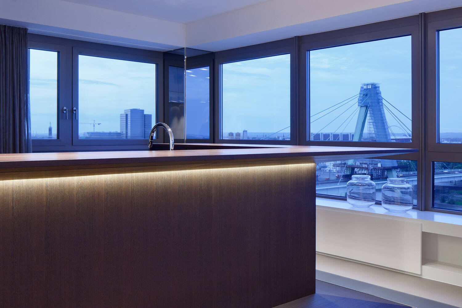 Einzigartig. Der Blick über die Stadt und den Rhein gleicht einem Spektakel, ist wundervoller und beständiger Teil des Alltags der Kölner Kranhäuser. Die drei Gebäude, die allesamt als Kranhäuser bezeichnet werden und als markantes Wahrzeichen des Rheinauhafens vom Aachener Architekten Alfons Lister und dem Hamburger Architekturbüro Bothe Richter Teherani (BRT) entworfen und geplant wurden, erinnern in ihrer markanten Form an die Kräne, die einst im Kölner Innenstadthafen die Flussschiffe beladen haben.