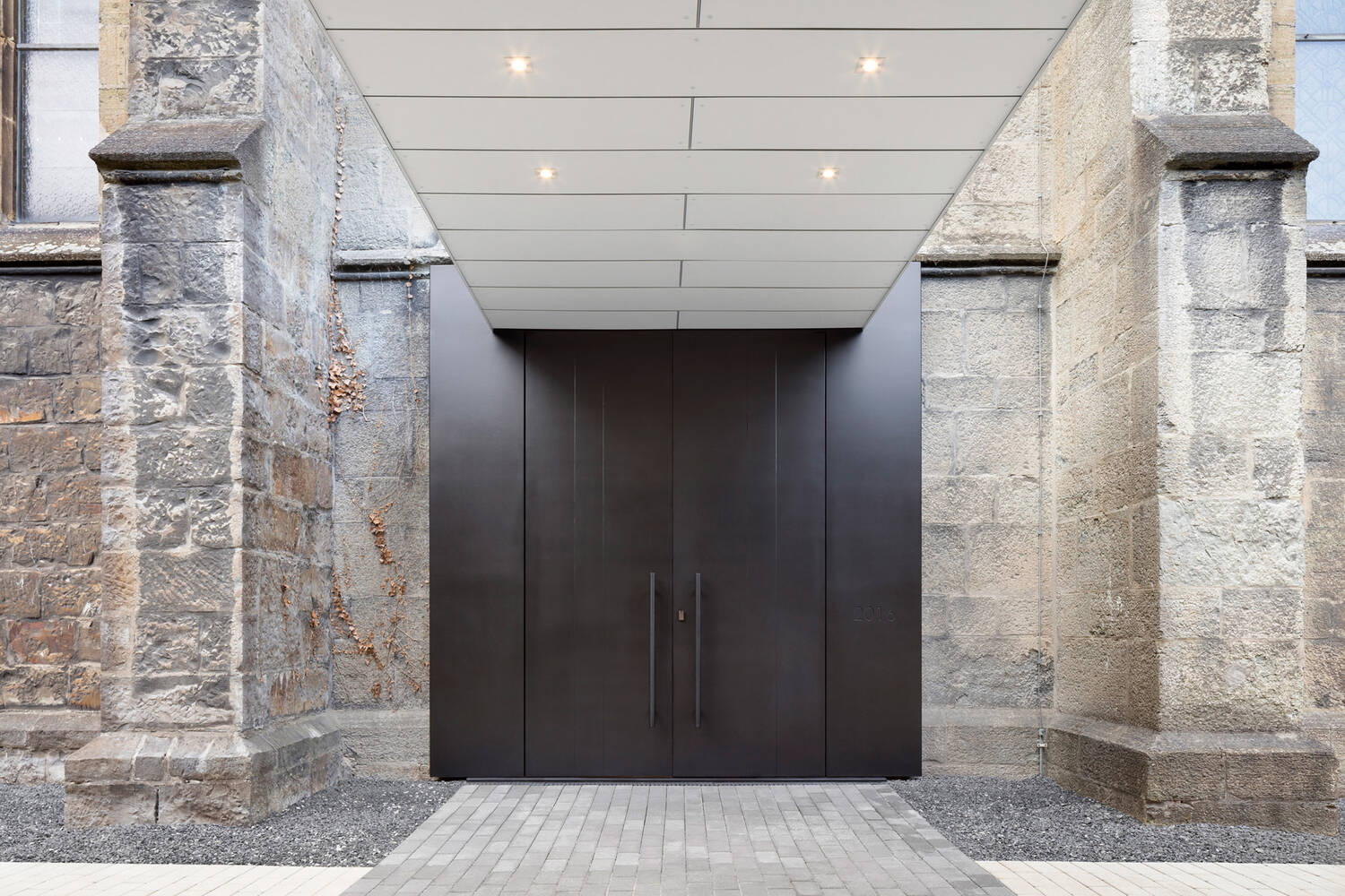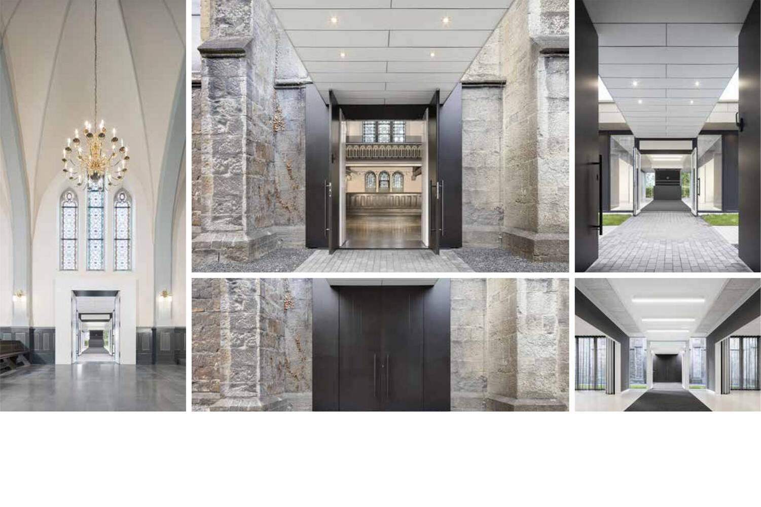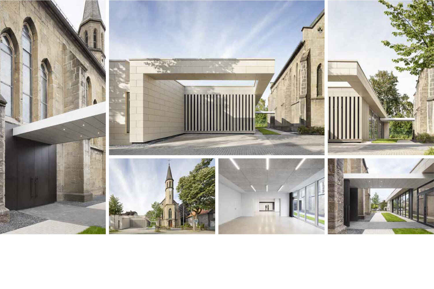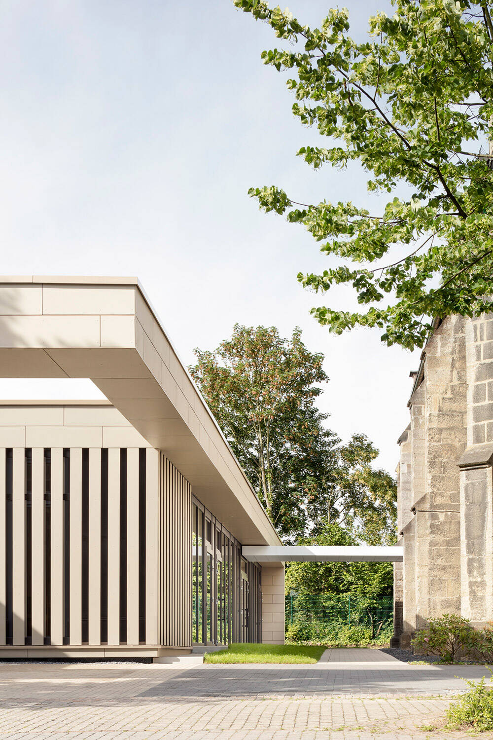 • Verbindung („Dachlinie“) von Neubau zu denkmalgeschützter Kirche (Durchbruch)