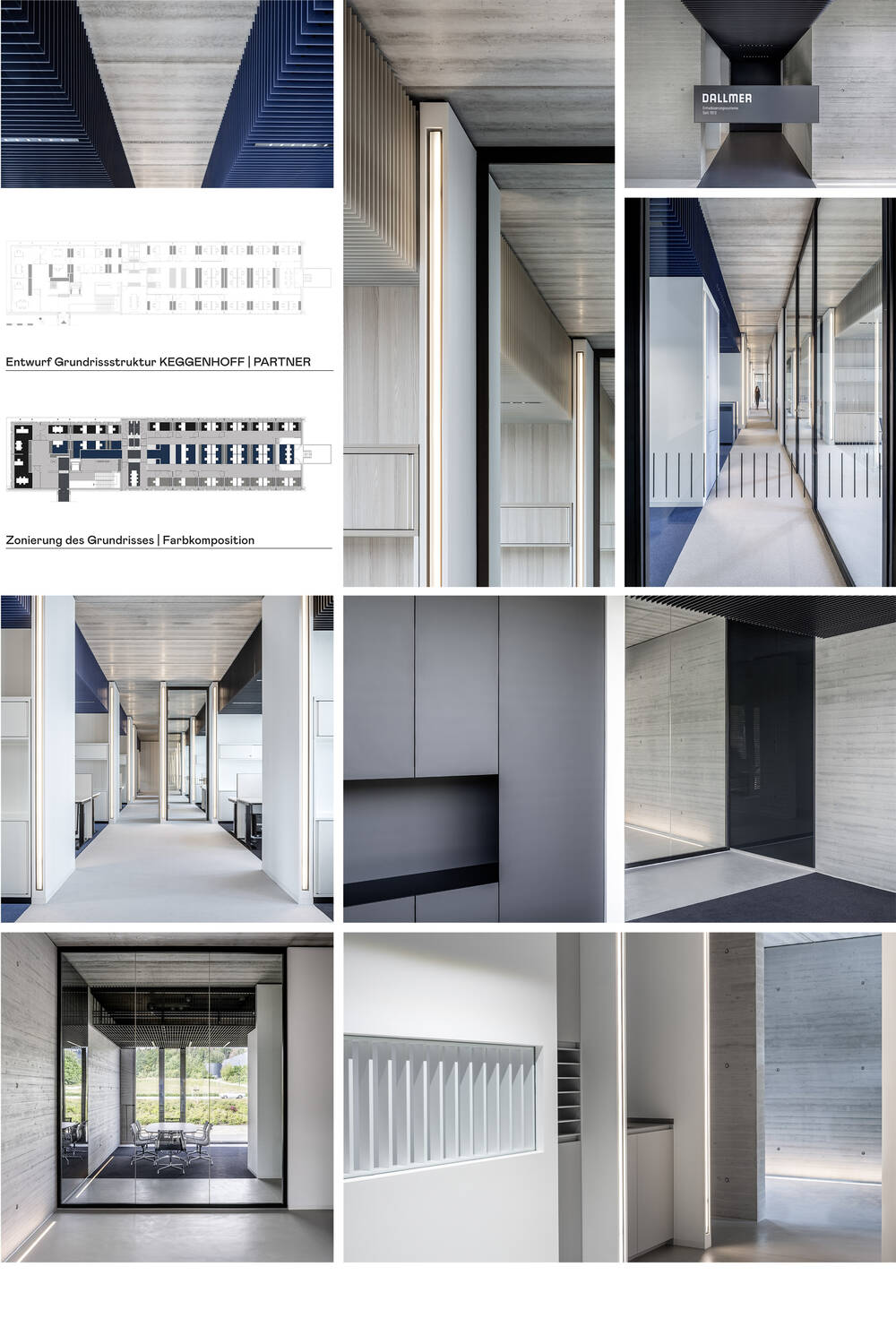 Das neu entstandene Dallmer Office, das der Geschäftsführung und dem Vertrieb im Obergeschoss einer Logistikhalle Platz bietet, folgt dem Ansatz einer gesamtheitlichen Positionierung. Im Grundriss teilt sich das Obergeschoss in zwei, übergeordnete Bereiche auf. Während die Kombination aus Empfang, Geschäftsführung und Konferenz, durch eine Verbindungsbrücke unmittelbar an das Hauptgebäude angeschlossen ist, ergänzt im verbleibenden Teil eine offene Bürowelt die Belegung.