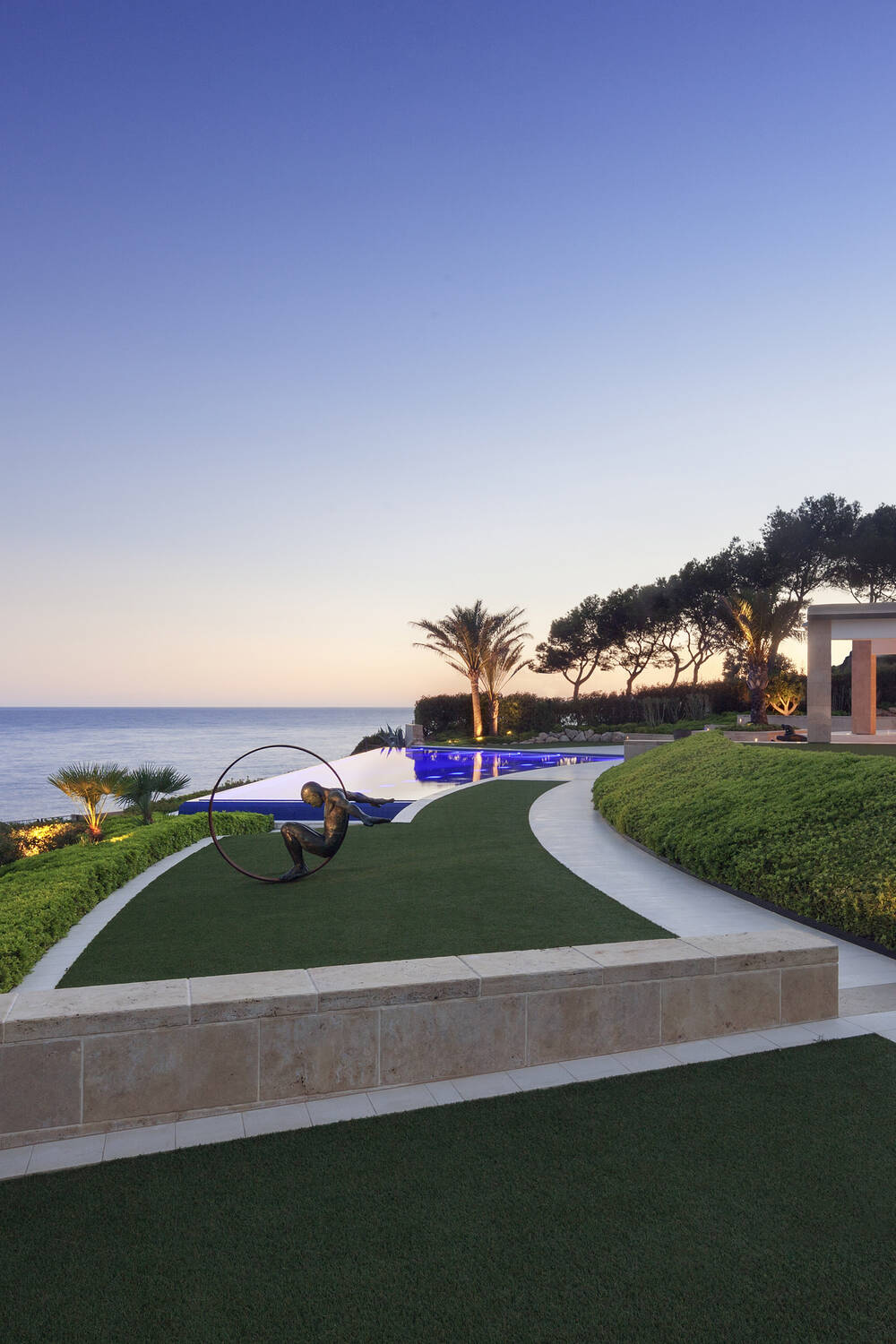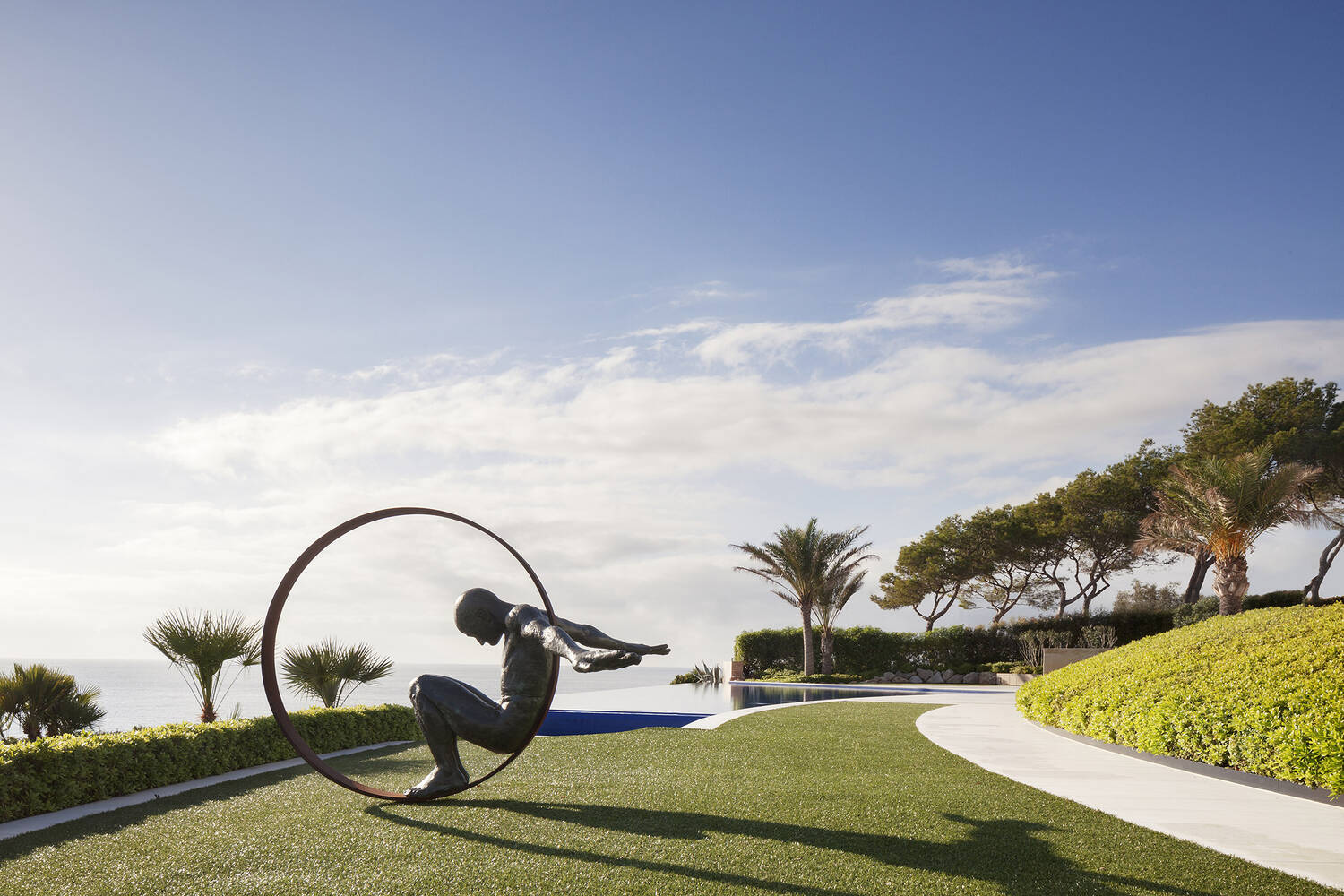 Als richtungsweisend galt das Schaffen einer durchgängigen Verbindung von Architektur, Innenarchitektur und Garten- und Landschaftsarchitektur als eine integrative, auf den Standort und die Topographie reagierende, Einheit. Die wechselhafte Kraft des Wassers, seine spezifische Anmutung und die Eigenschaft als Spiegel der Landschaft zu funktionieren, inspirierte dazu, einen besonderen Ort der Erholung zu gestalten.