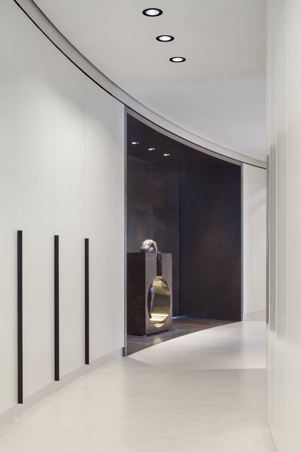 Der architektonische Entwurf in seiner sich öffnenden, radial ausgerichteten Struktur wurde von dem Prinzip des Fächers inspiriert. Der Fächer, der nicht nur im übertragenen Sinne Kommunikationsebenen erweitert, tariert auch im Grundriss Grenzen und Übergänge, Rückzug und Offenheit aus. Eine elegant introvertierte Atmosphäre zieht sich in der innenarchitektonischen Gestaltung konzeptionell durch alle Bereiche.