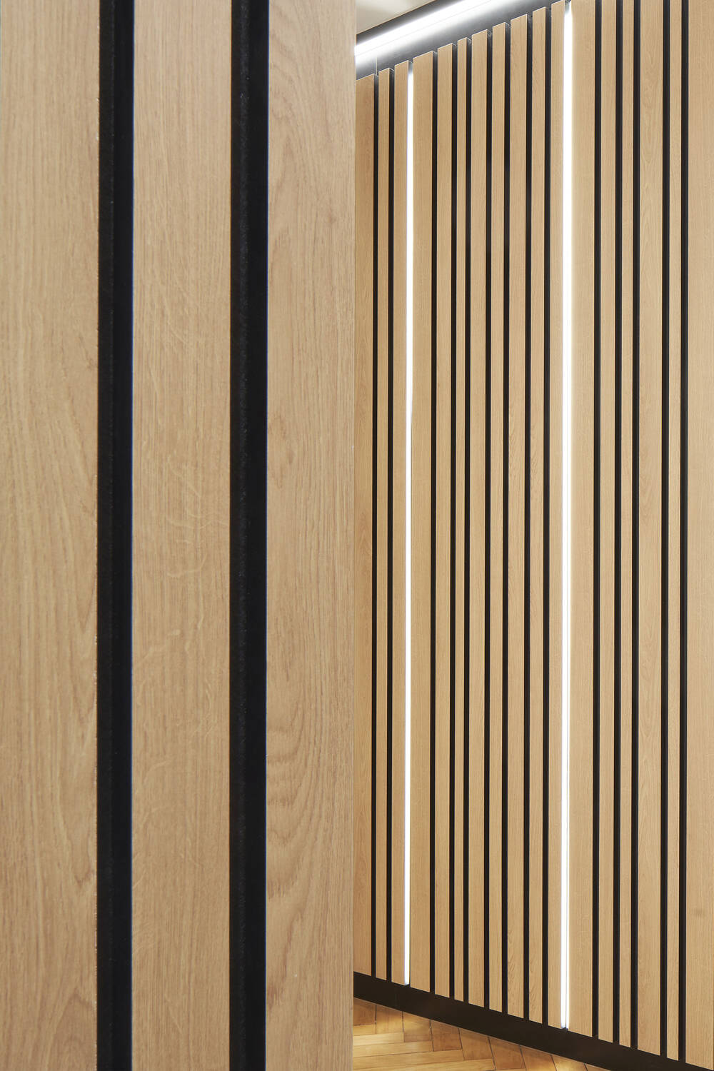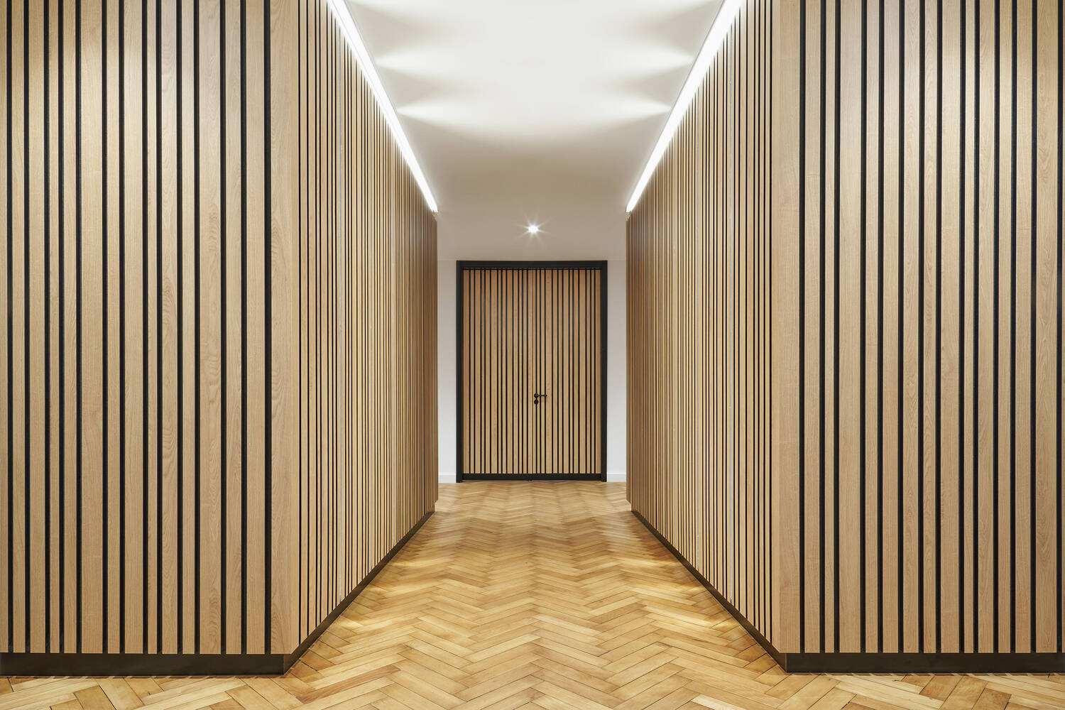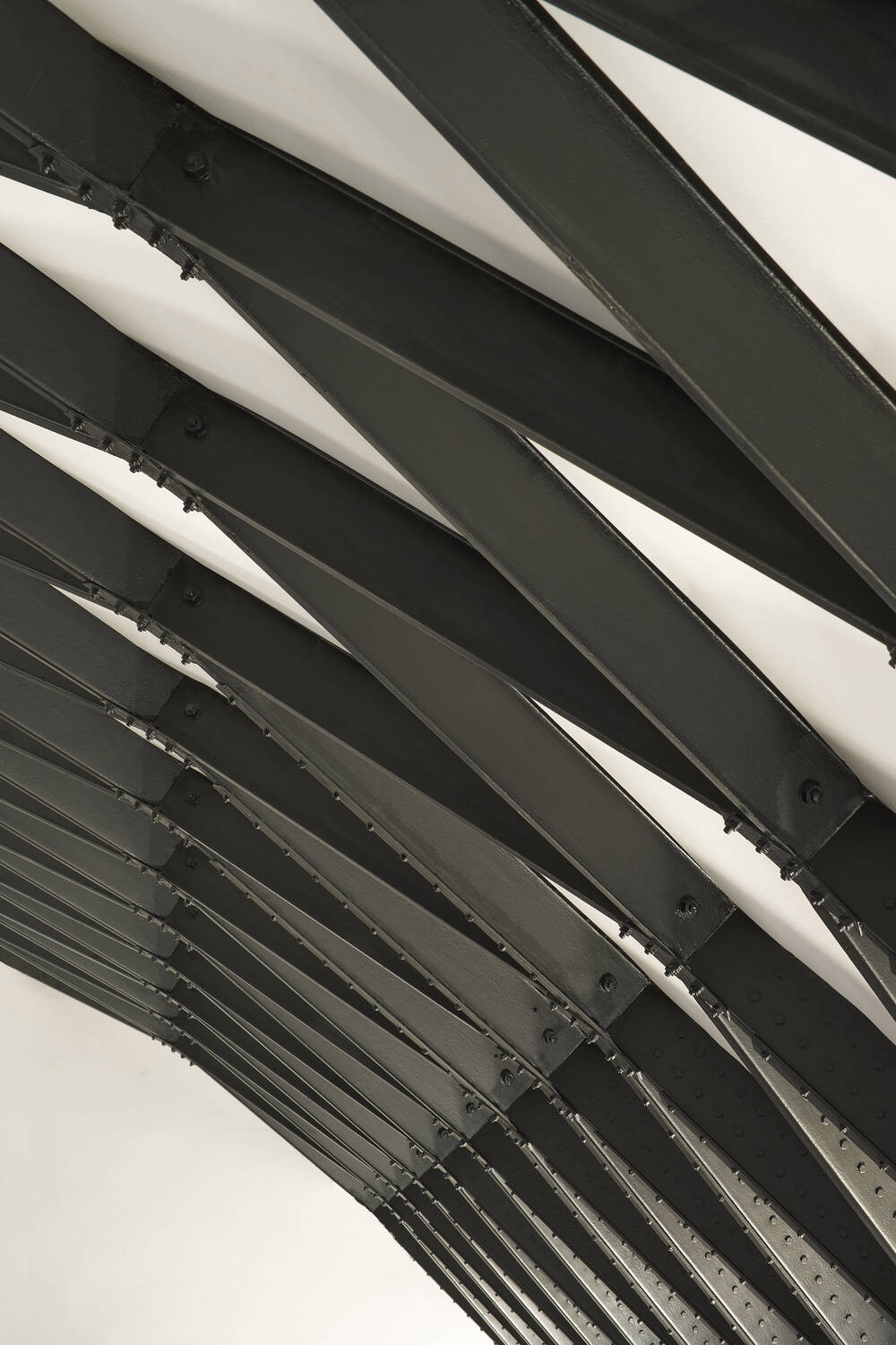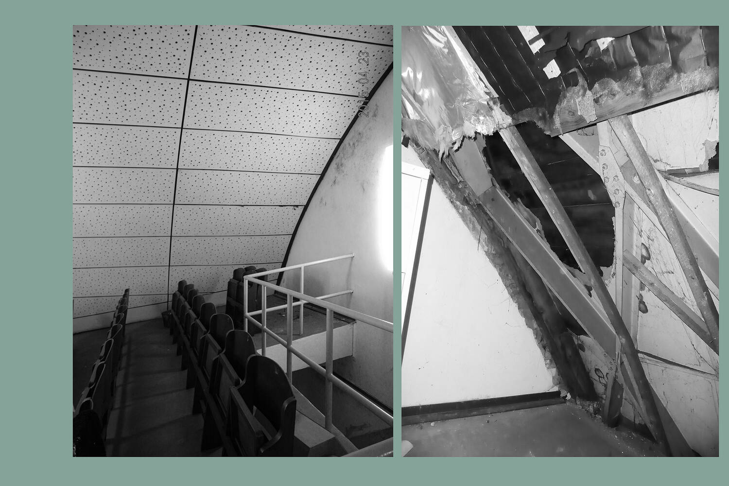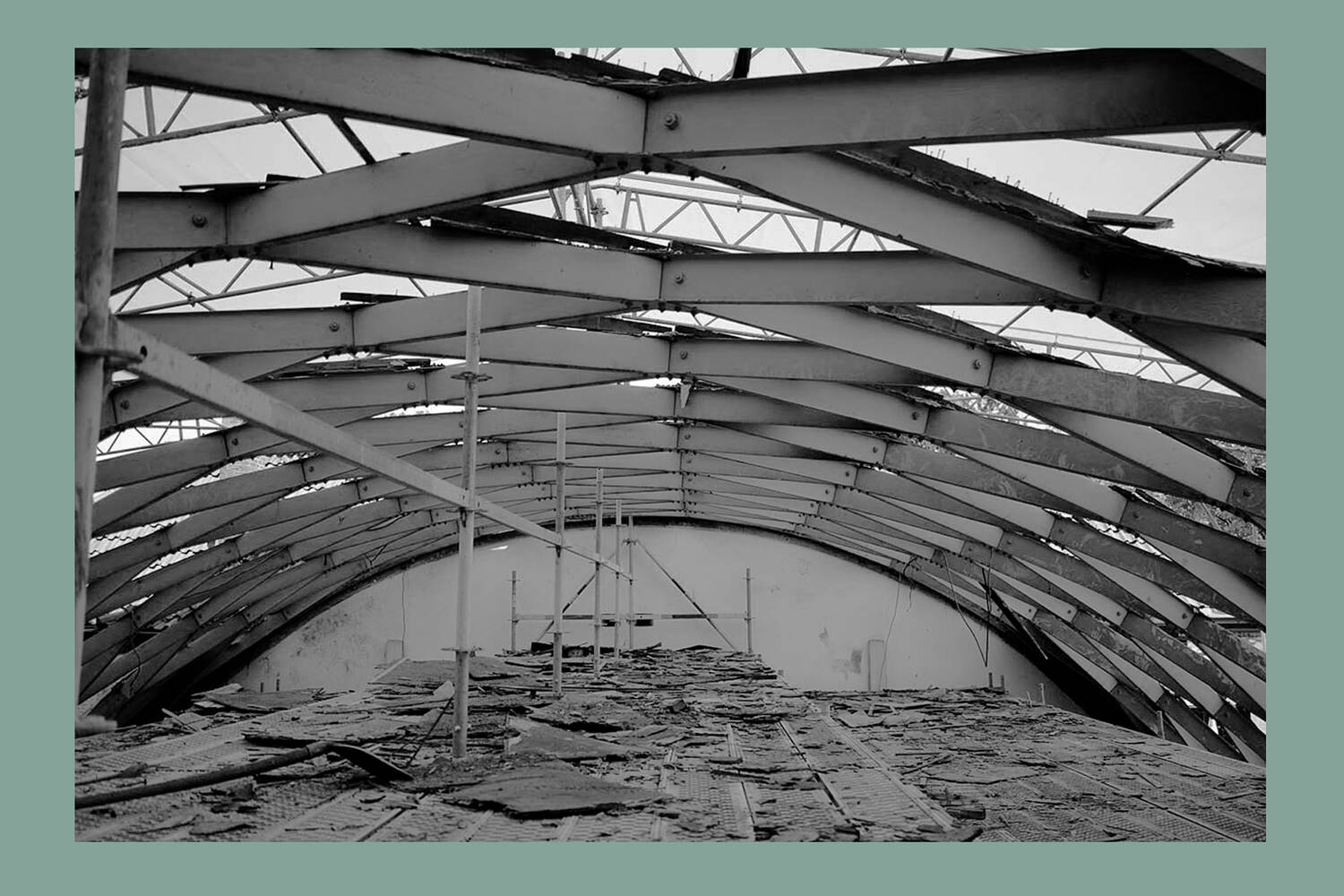 Im Rahmen der umfangreichen Sanierung des denkmalgeschützten Gemeindehauses wird die in Vergessenheit geratene Dachkonstruktion, ein ursprünglich sichtbares Rautennetz aus gekantetem Stahlblech, hinter diversen, mehrschichtigen Verbauungen entdeckt. Statisch ertüchtigt und instand gesetzt, wird es sichtbar inszeniert.