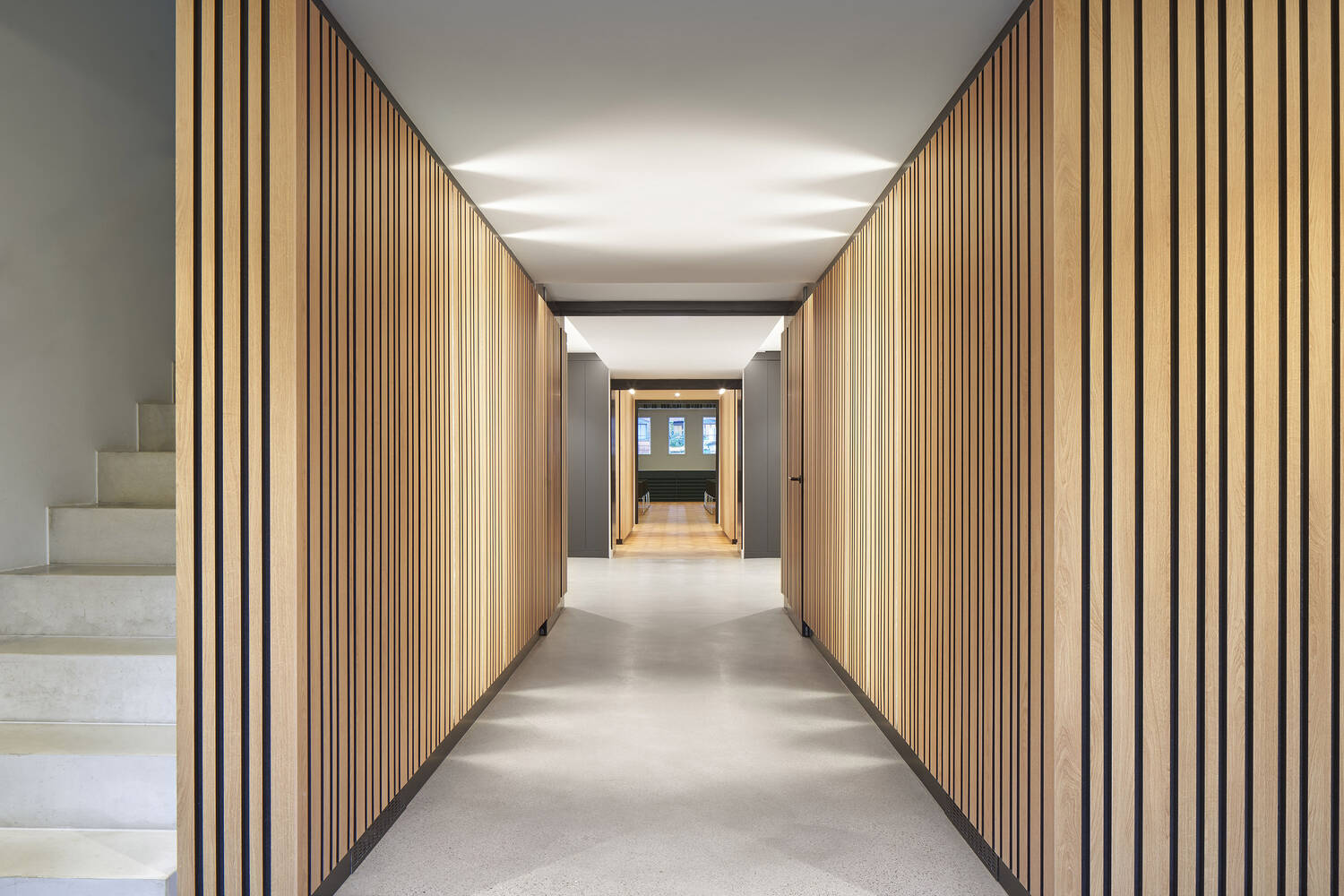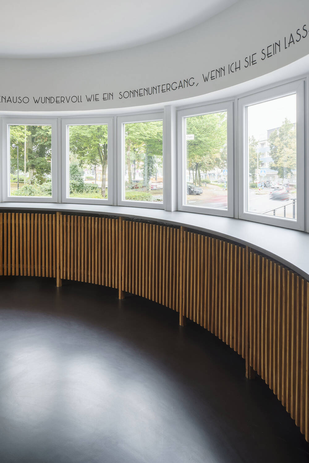 „Evangelisch, bunt, mitten im Dorf“: das Leitbild der offenen und engagierten Gemeinde St. Victor. Kraftvolle, vernetzende Strukturen und Beziehungen in diesem Sinne in den Raum zu tragen, definiert die Essenz der Entwurfsabsicht. Die neuen, behutsam definierten Raumabfolgen im denkmalgeschützten Bestand sind in ihrer Ausrichtung so konzipiert, dass dynamische und zur Begegnung angelegte, soziale Arbeitsprozesse ermöglicht werden. Eine Kultur der Offenheit und Öffnung bildet sich ab - nach innen und außen.